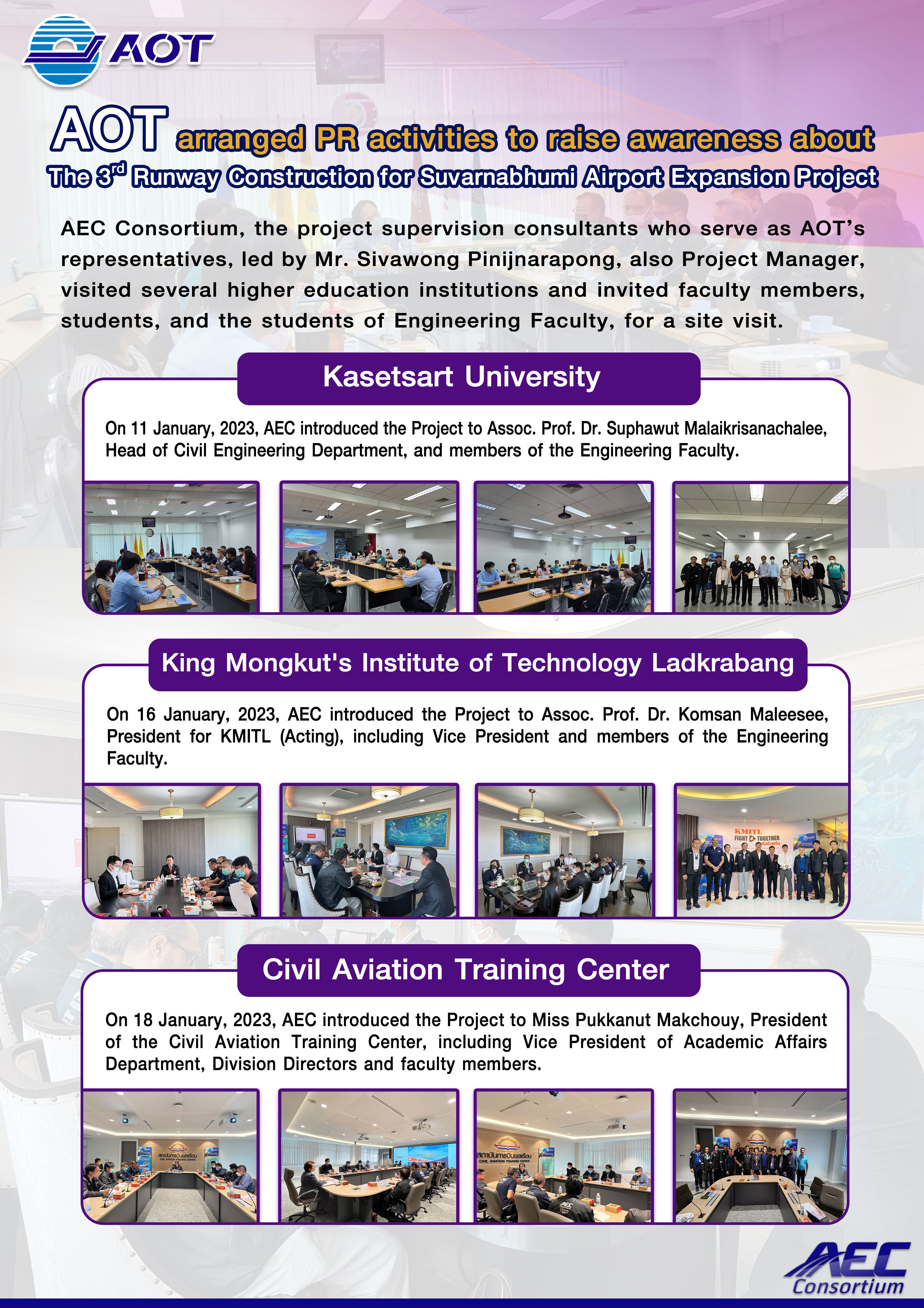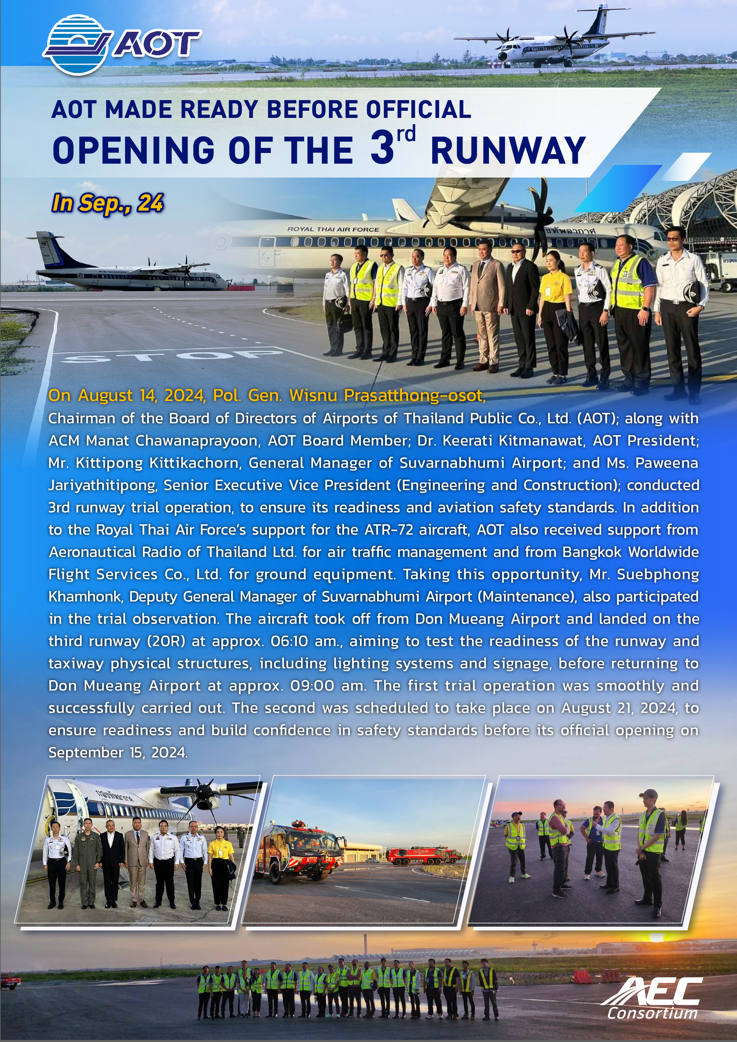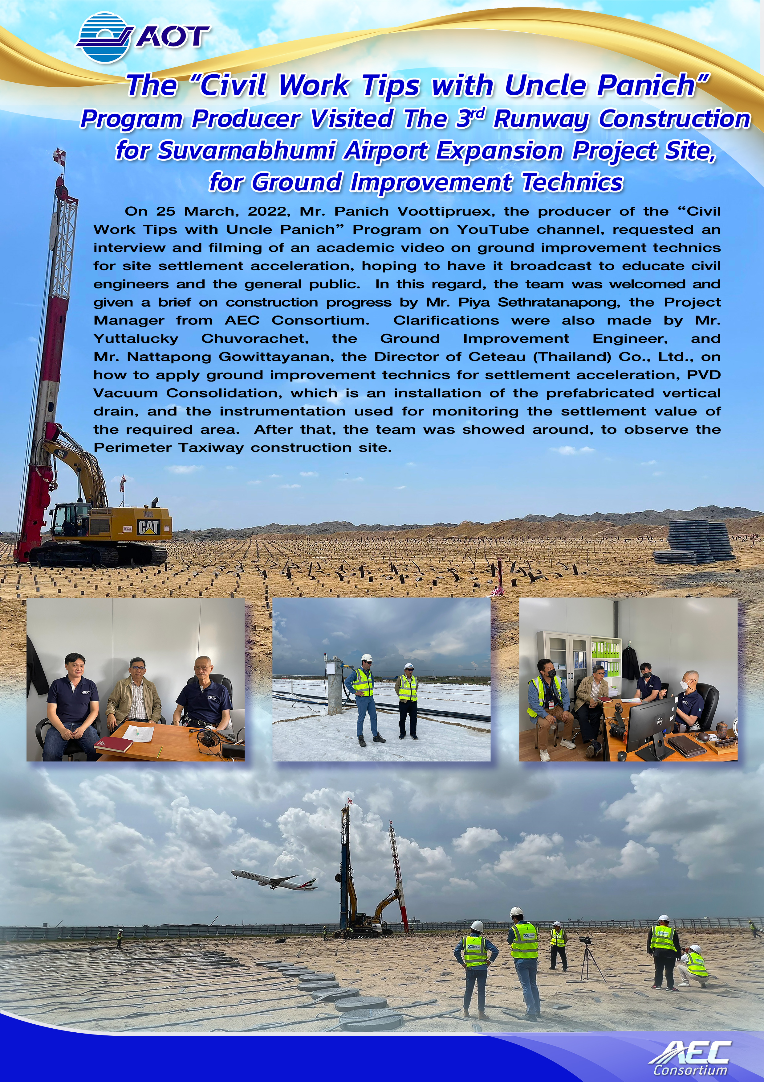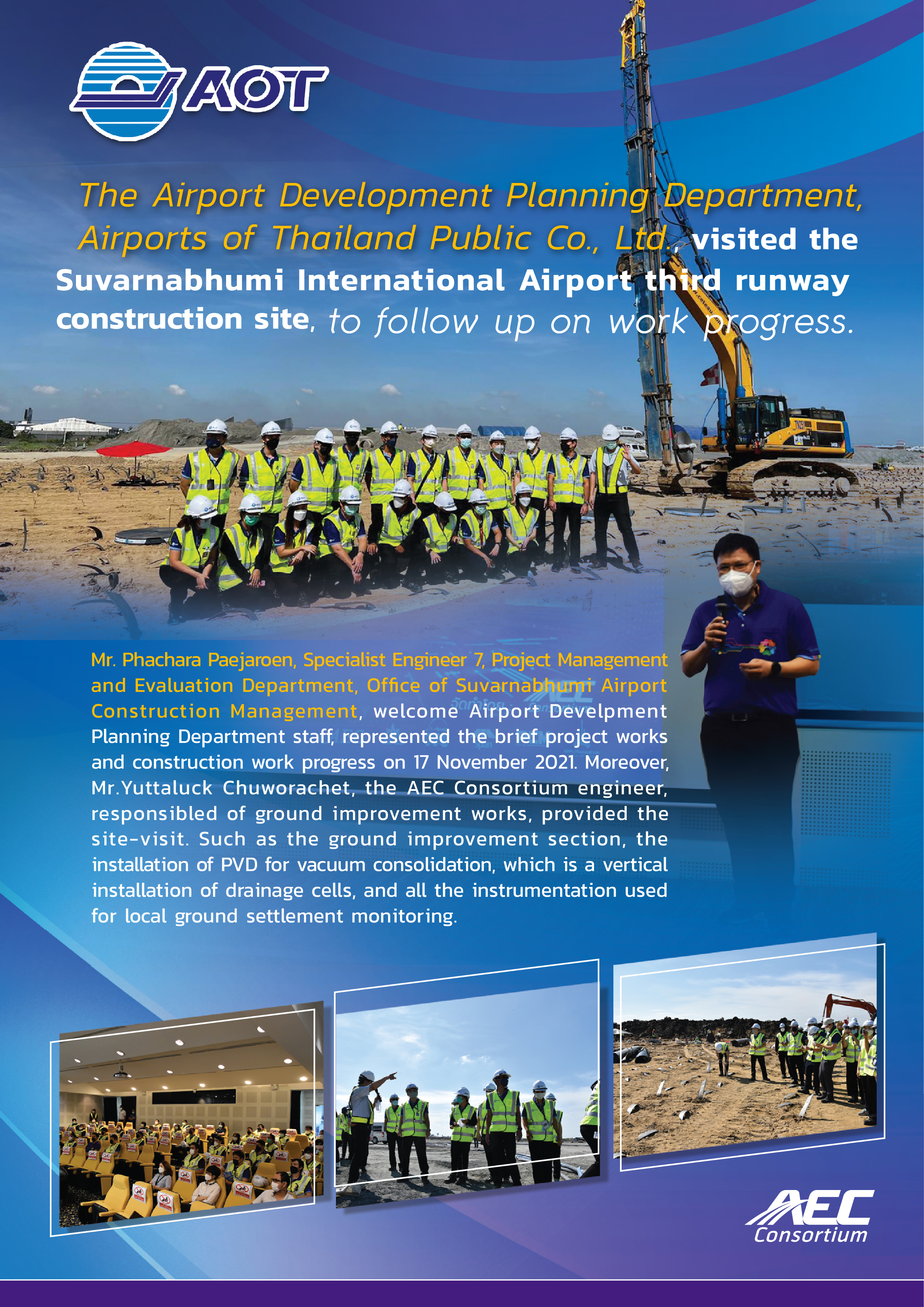 Public relations for The 3rd Runway Construction for Suvarnabhumi Airport Expansion Project is done in the forms of both brochures and videos, presented specifically for each construction stage, to gradually make known the project progress throughout the 3-year construction period.