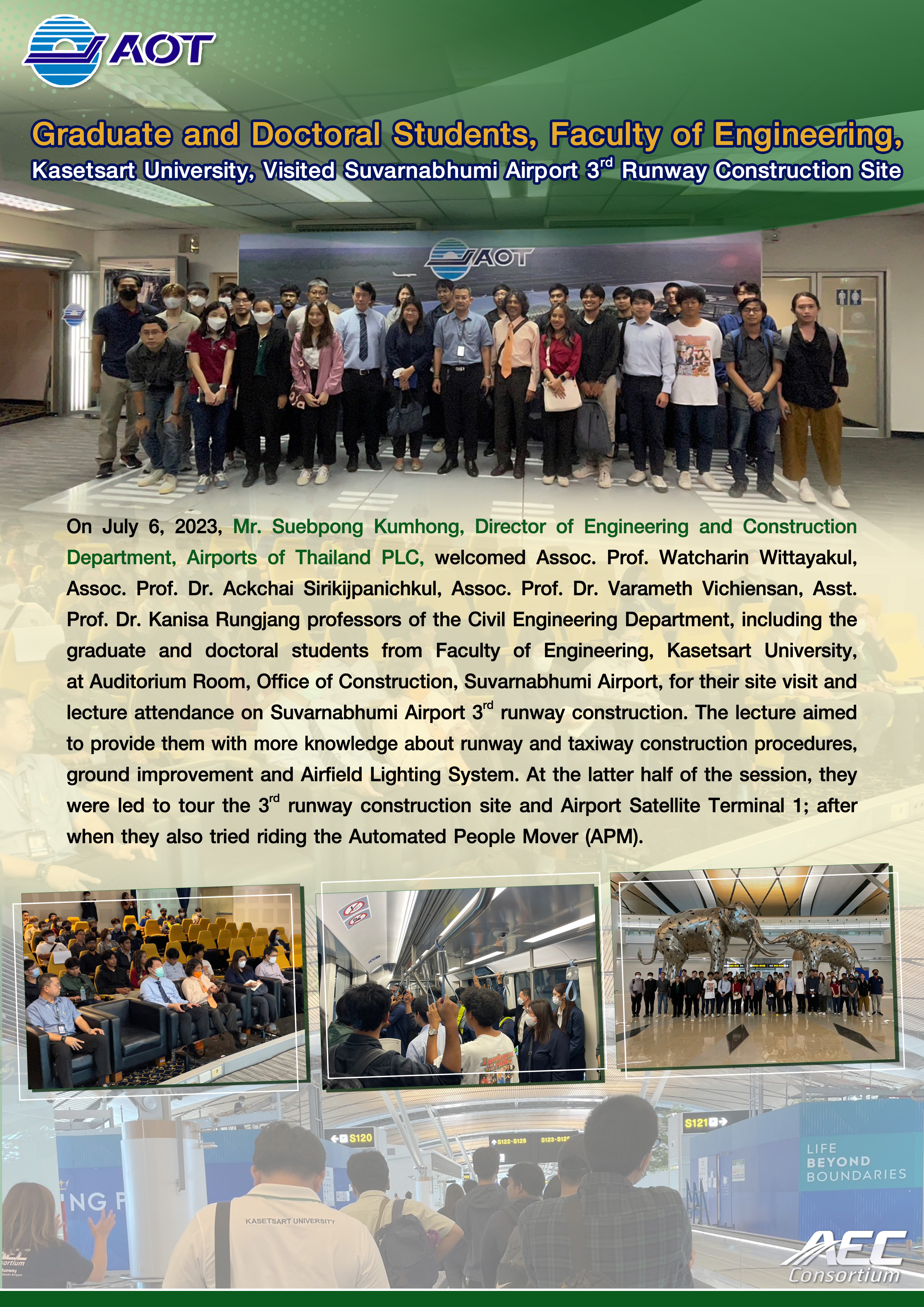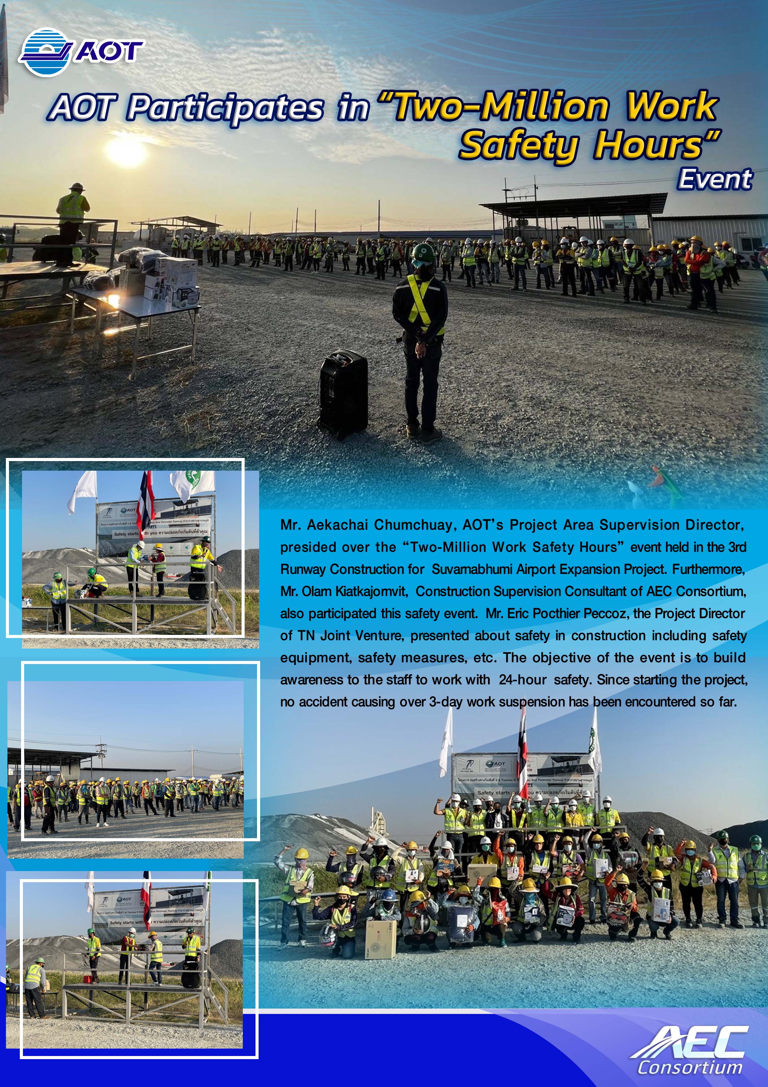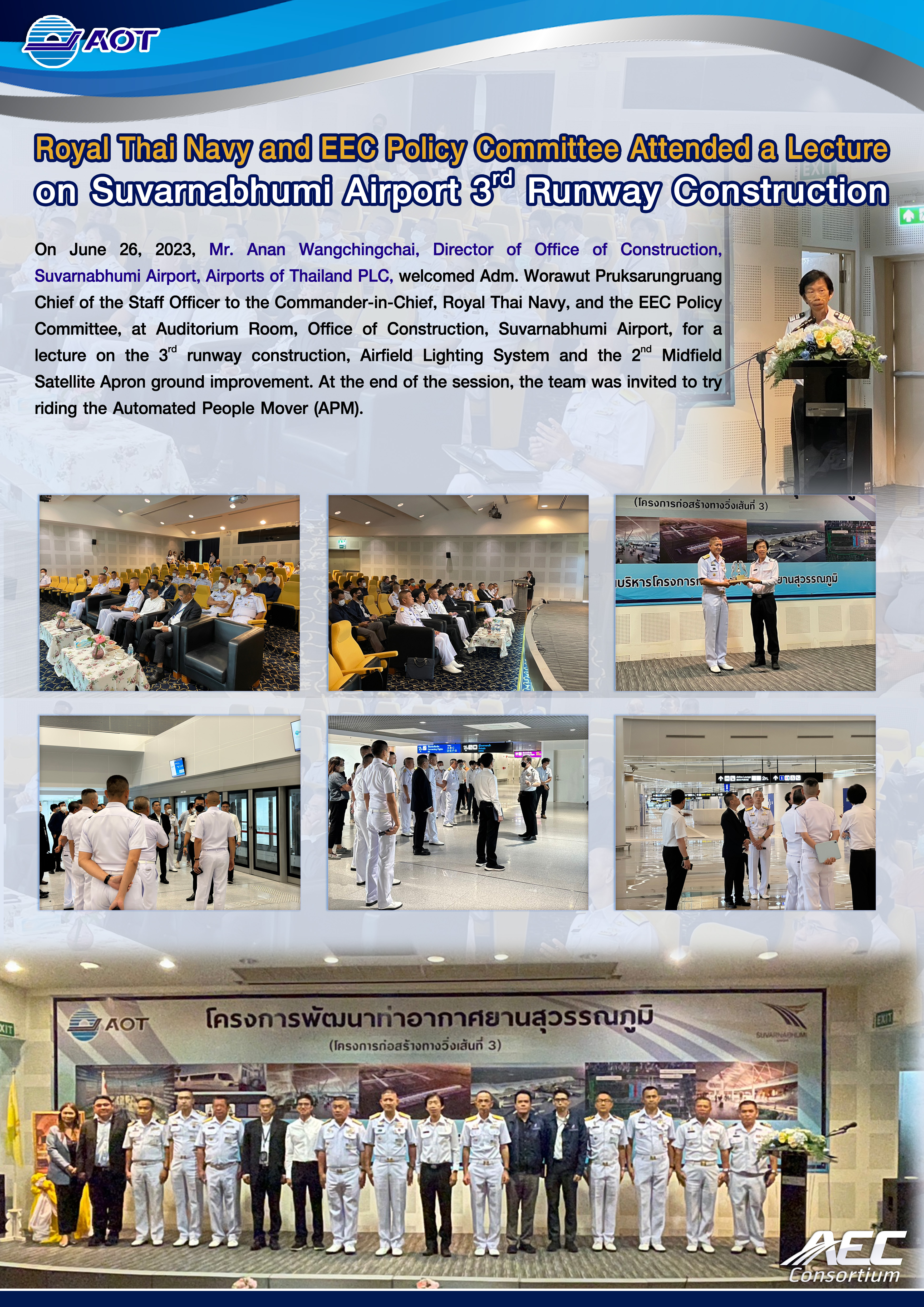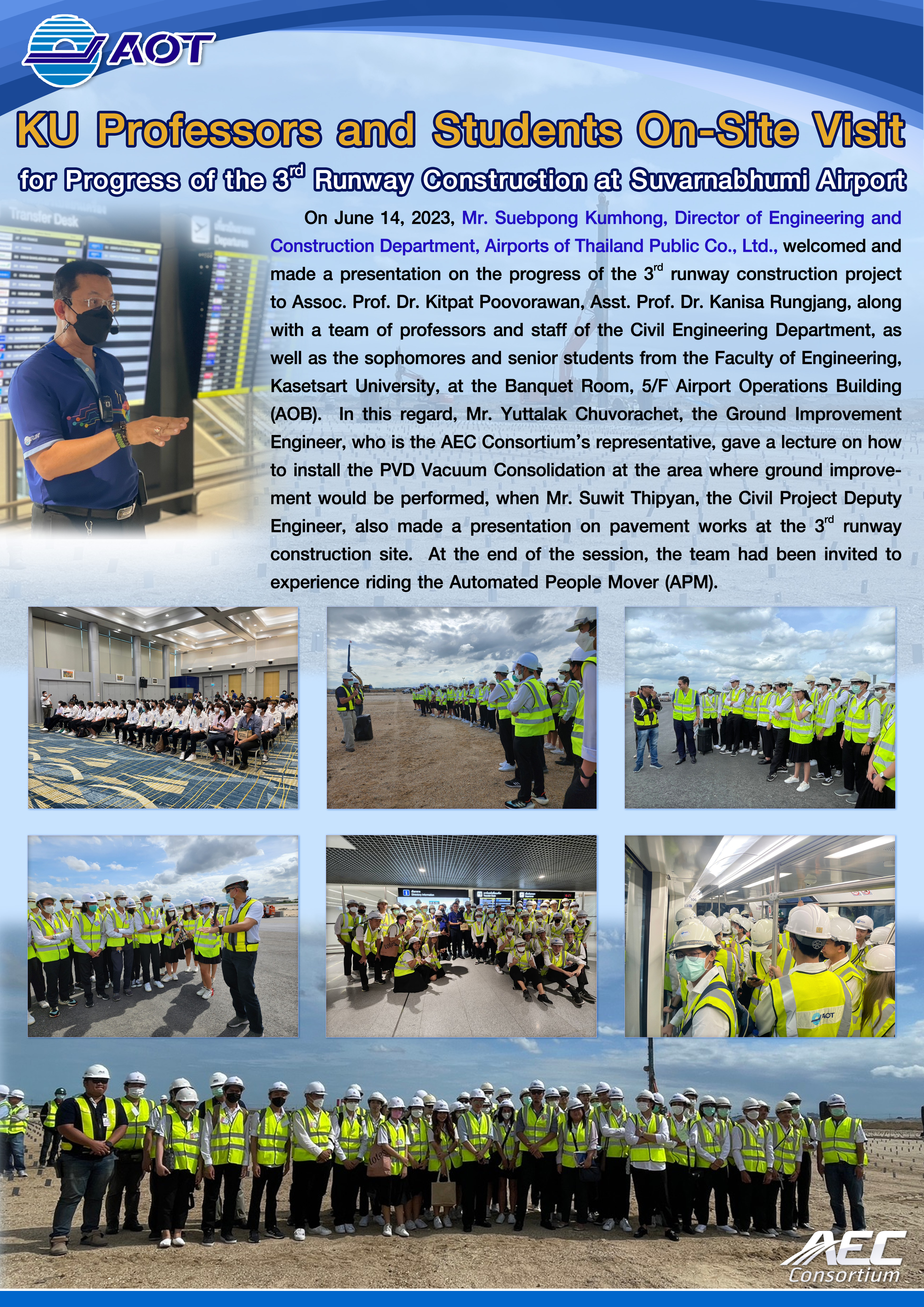 Public relations for The 3rd Runway Construction for Suvarnabhumi Airport Expansion Project is done in the forms of both brochures and videos, presented specifically for each construction stage, to gradually make known the project progress throughout the 3-year construction period.